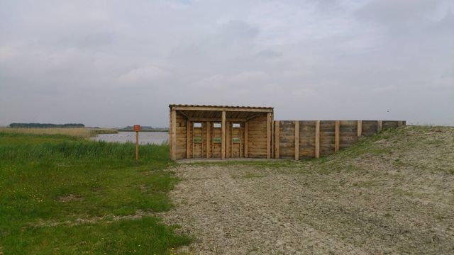 Kijkscherm bij plas bij Wierzylster Rak. Scherm staat mooi dicht bij de plas.