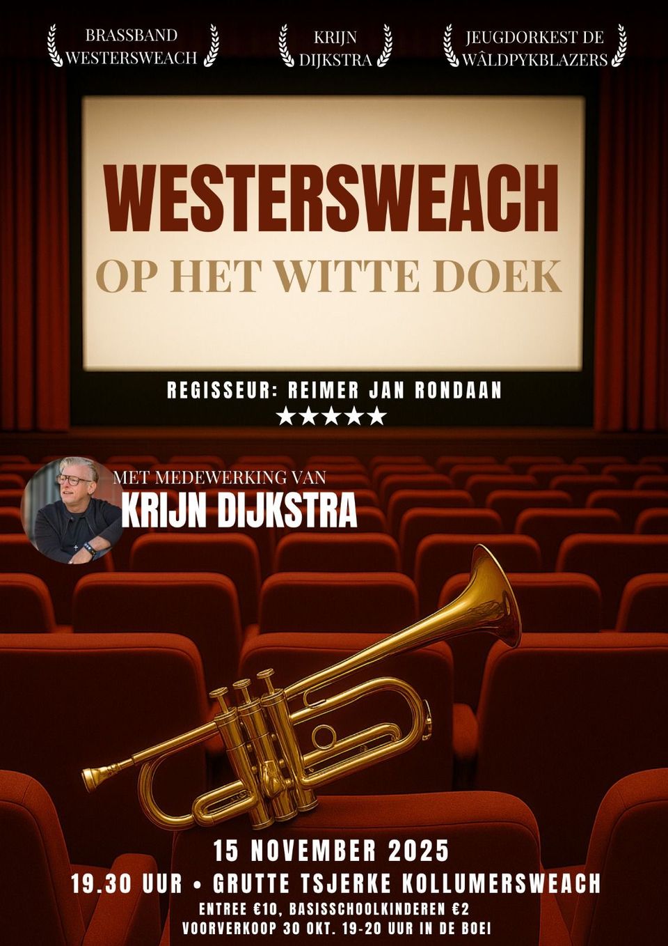 Op zaterdag 15 november om 19:30 vindt het Najaarsconcert van Brassband Westersweach o.l.v. Reimer Jan Rondaan plaats. Het concert wordt gehouden in de Grutte Tsjerke te Kollumerzwaag. Het thema van dit jaar is "Op het Witte Doek", waarbij bekende filmmuziek centraal staat.