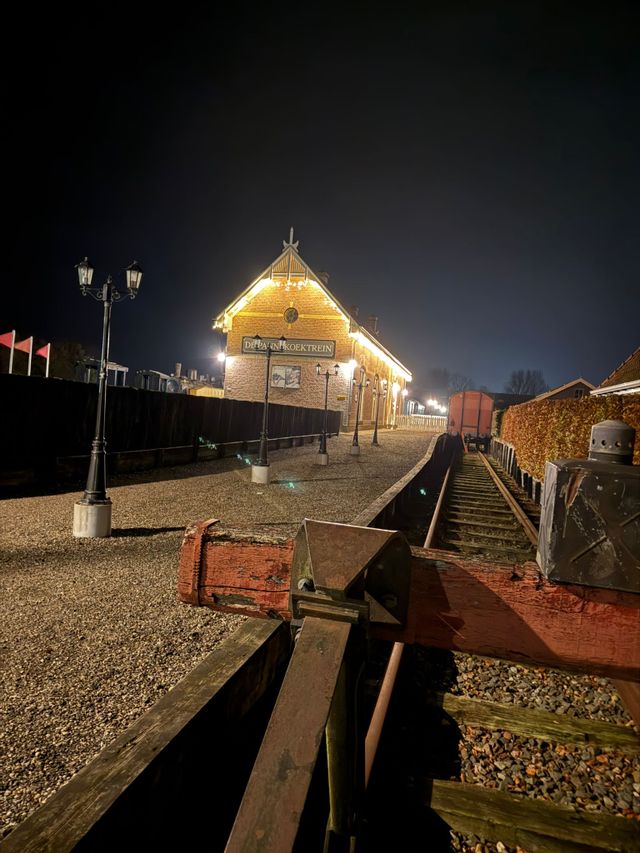 Sfeervolle kerstmarkt bij Station Marrum vol lichtjes, lokale makers en warme wintergezelligheid.