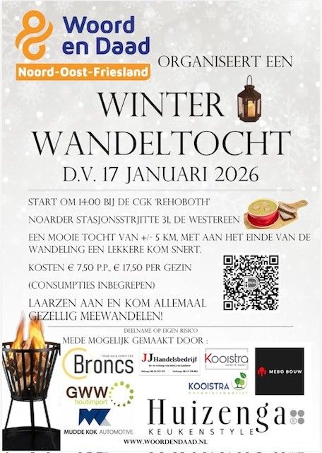 WINTERWANDELTOCHT De Westereen. Woord&Daad organiseert een leuke winterwandeltocht op D.V. 17 januari 2026 rond De Westereen.