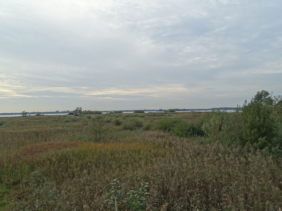 Zoetwatermeer omgeven door brede rietlanden.